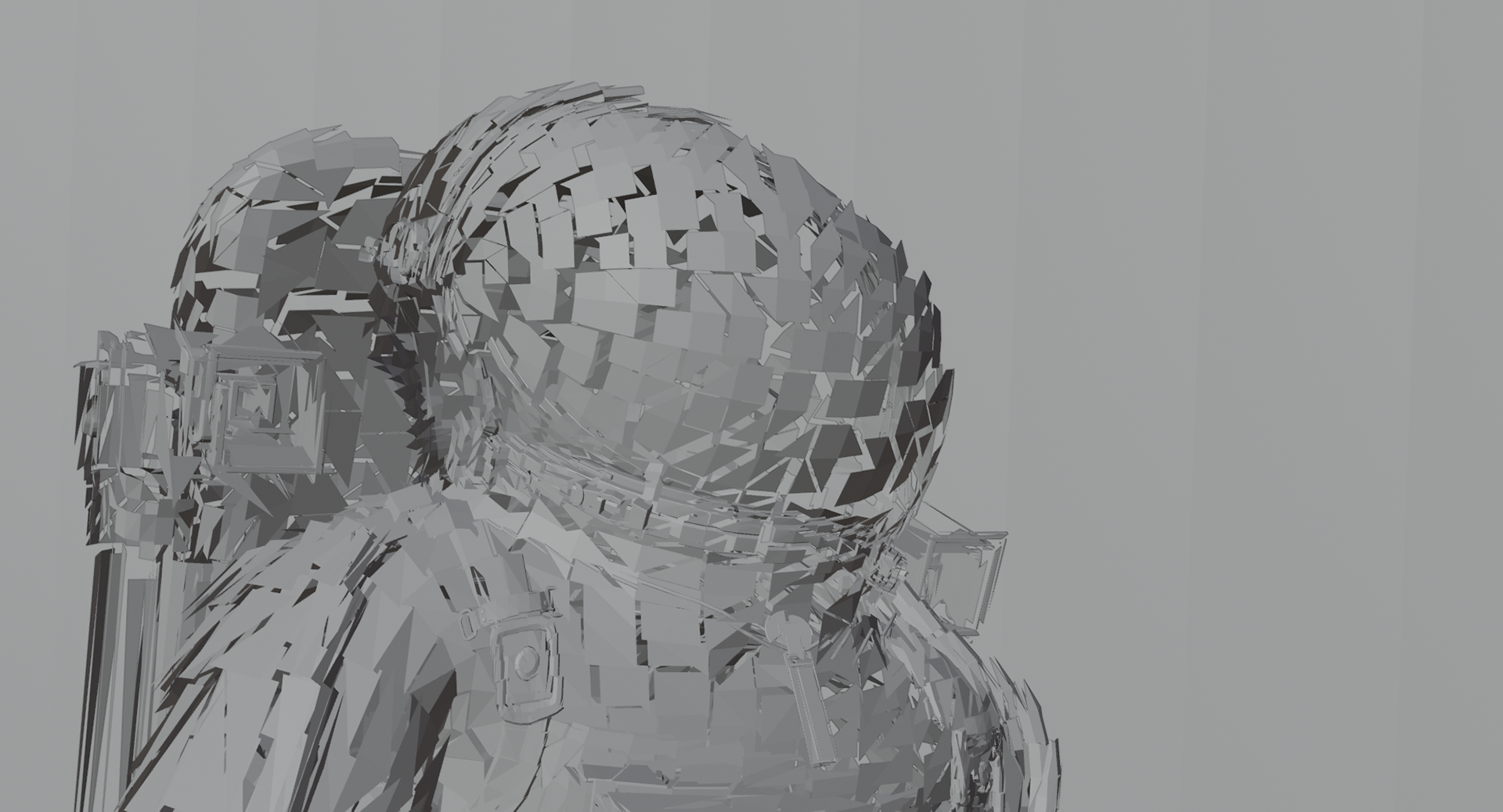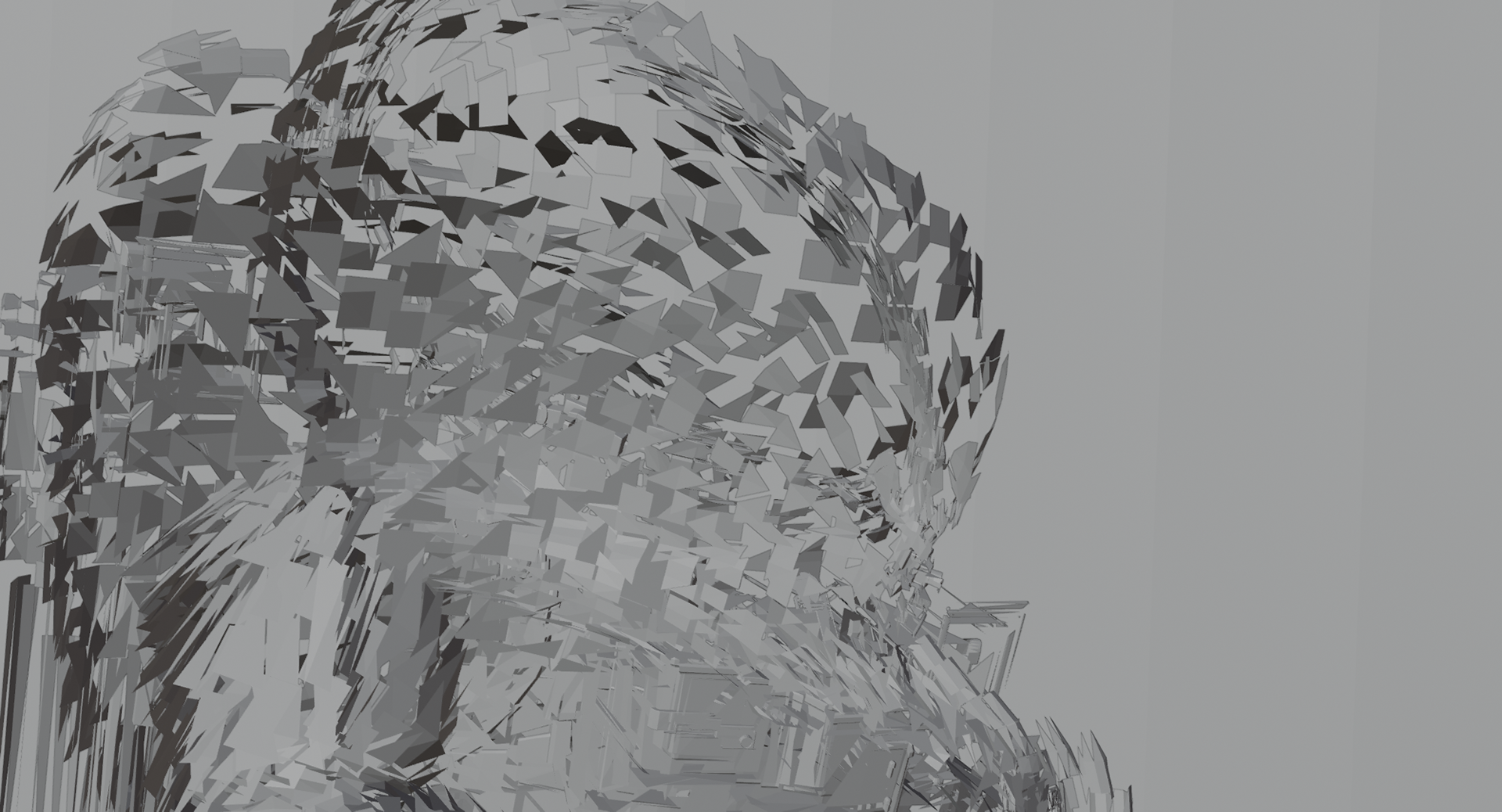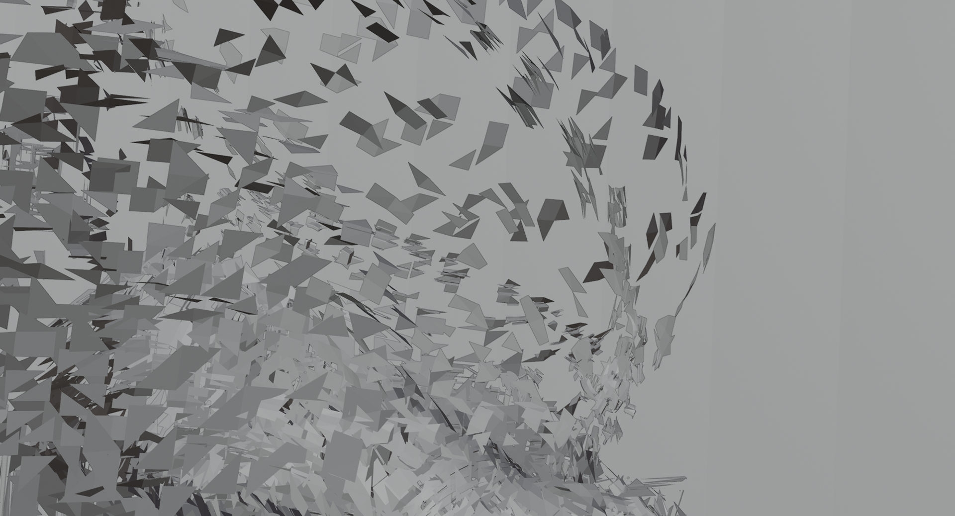Highlighting key testing processes, the animation transitions to a complex procedural shattering effect, where the form breaks apart into thousands of geometric fragments.